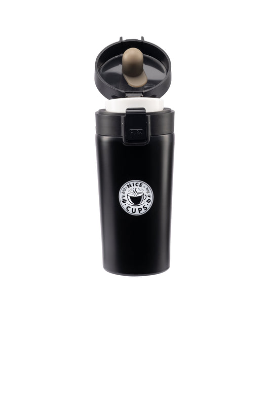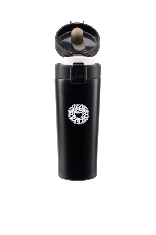 Nice Cups Stainless Steel Vacuum Insulated Tumbler – Double Wall, Leak-Proof, Lockable Push Button Lid, Keeps Drinks Hot 8H & Cold 12H – Travel Mug for Coffee, Tea or Water (Black, 17oz)