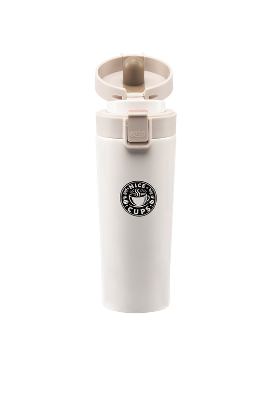 Nice Cups Stainless Steel Vacuum Insulated Tumbler – Double Wall, Leak-Proof, Lockable Push Button Lid, Keeps Drinks Hot 8H & Cold 12H – Travel Mug for Coffee, Tea or Water (Cream, 17oz)