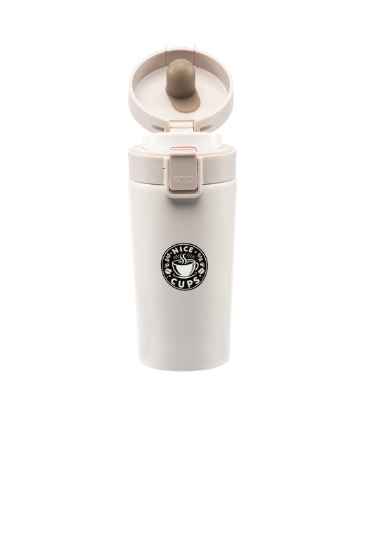 Nice Cups Stainless Steel Vacuum Insulated Tumbler – Double Wall, Leak-Proof, Lockable Push Button Lid, Keeps Drinks Hot 8H & Cold 12H – Travel Mug for Coffee, Tea or Water (Cream, 13oz)