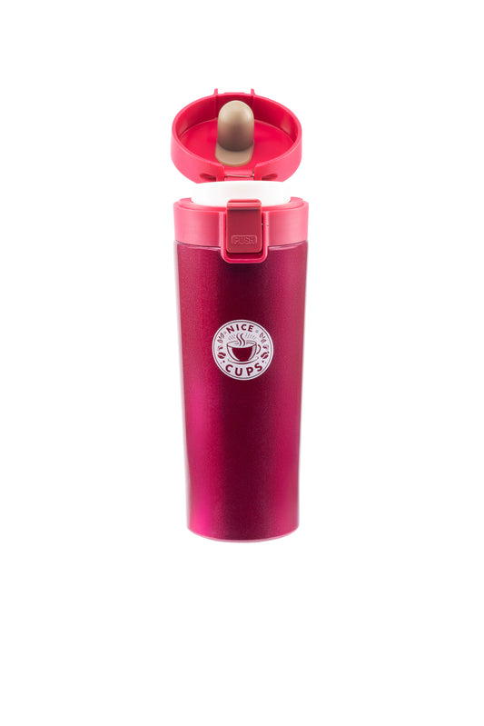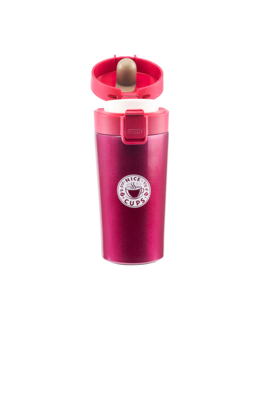 Nice Cups Stainless Steel Vacuum Insulated Tumbler – Double Wall, Leak-Proof, Lockable Push Button Lid, Keeps Drinks Hot 8H & Cold 12H – Travel Mug for Coffee, Tea or Water (Pink, 17oz)